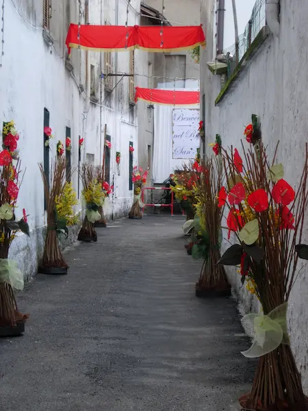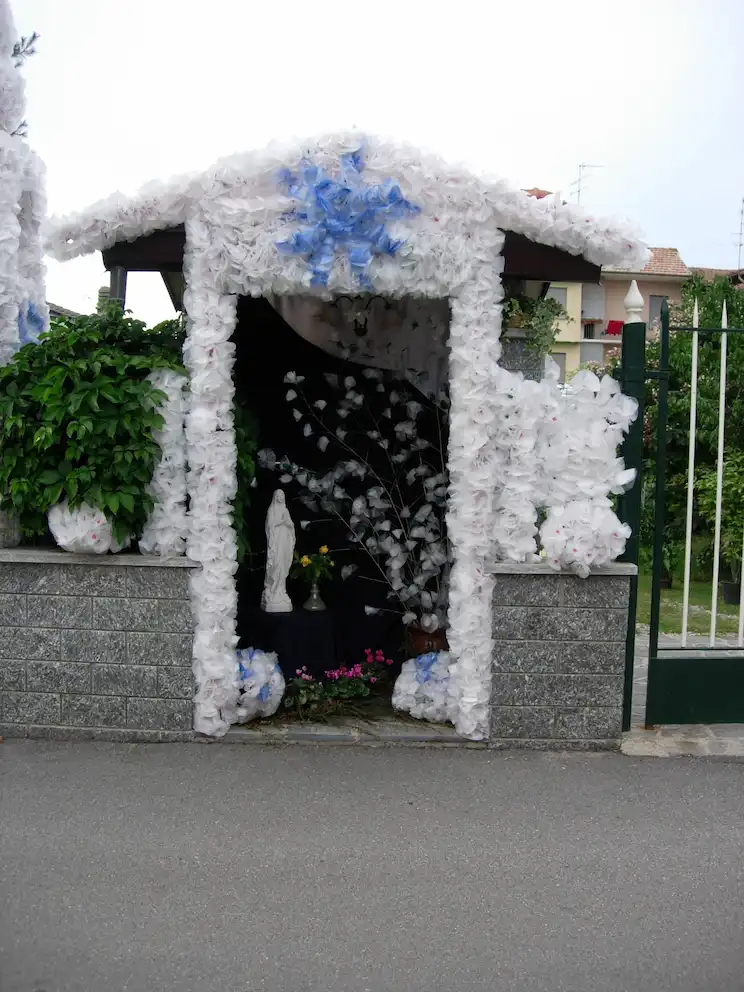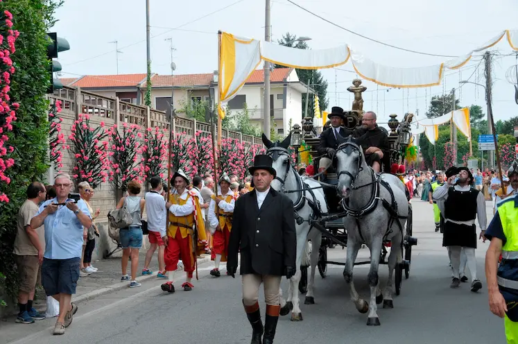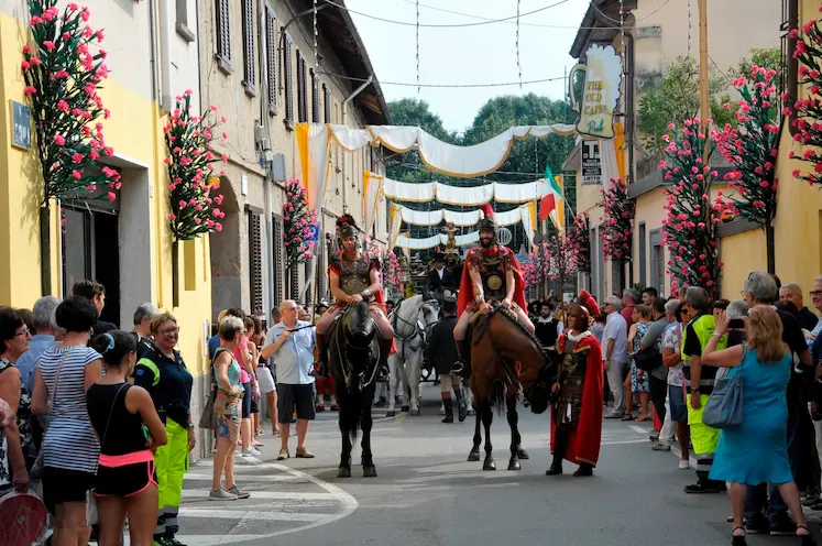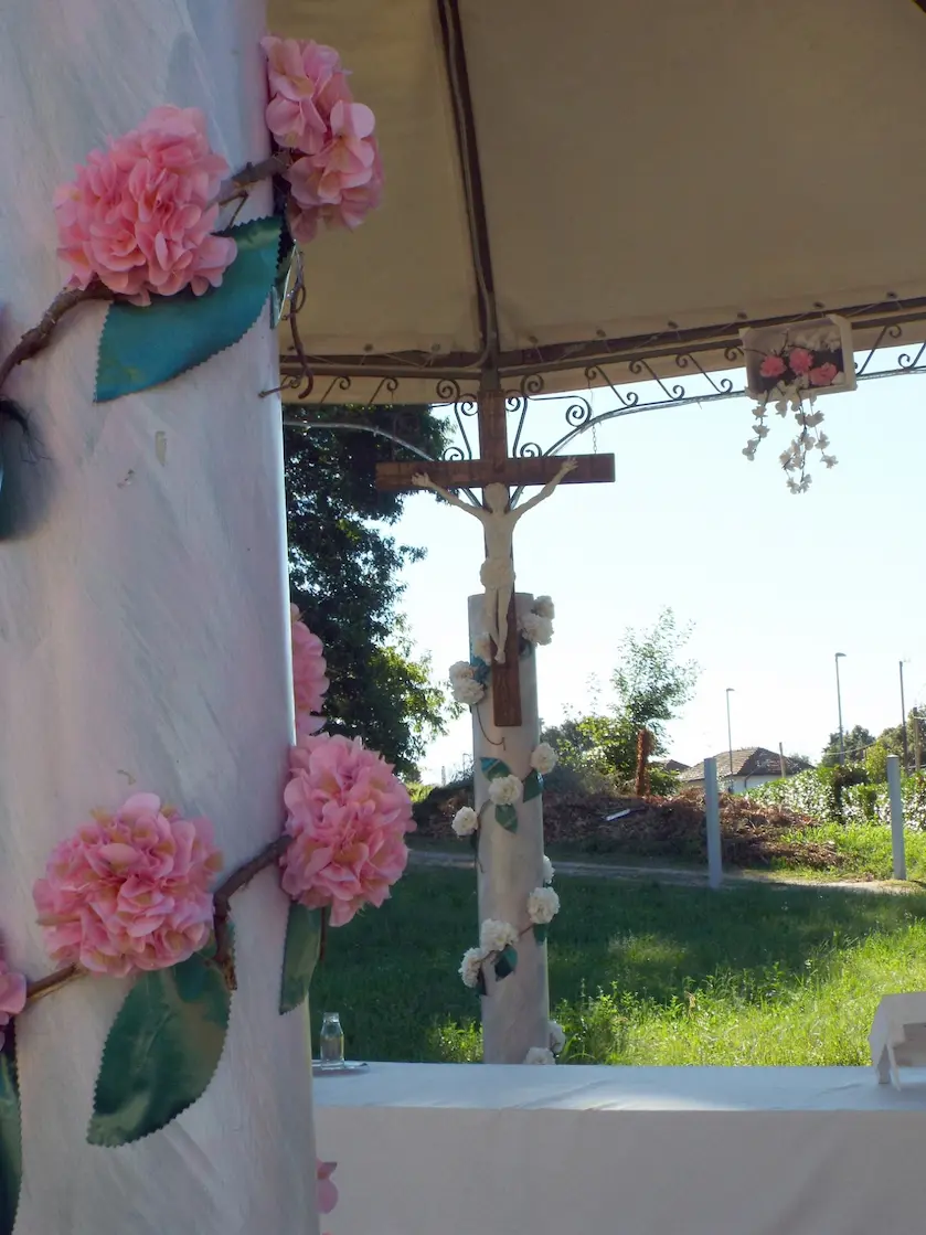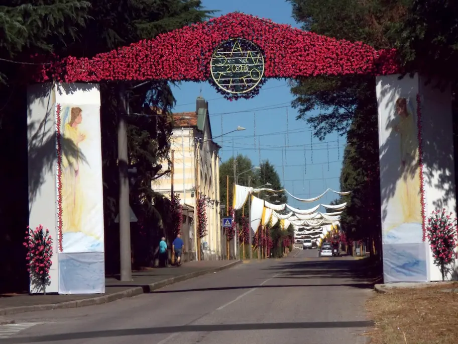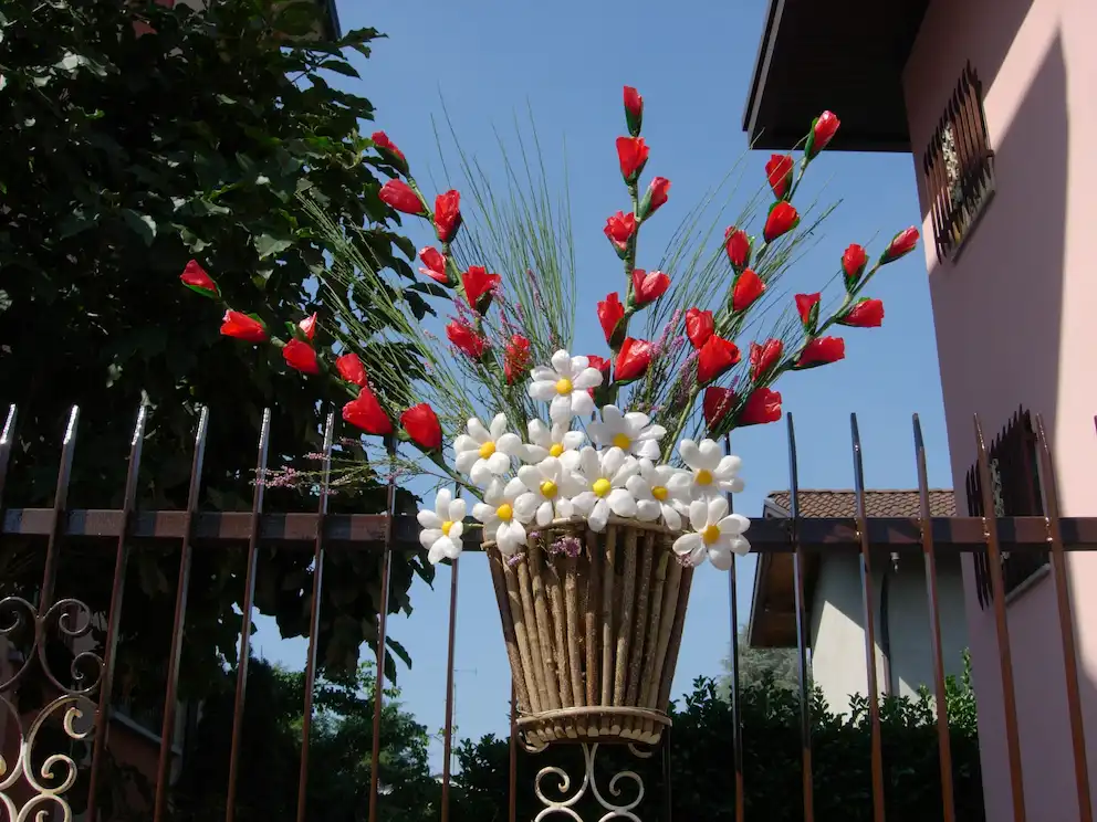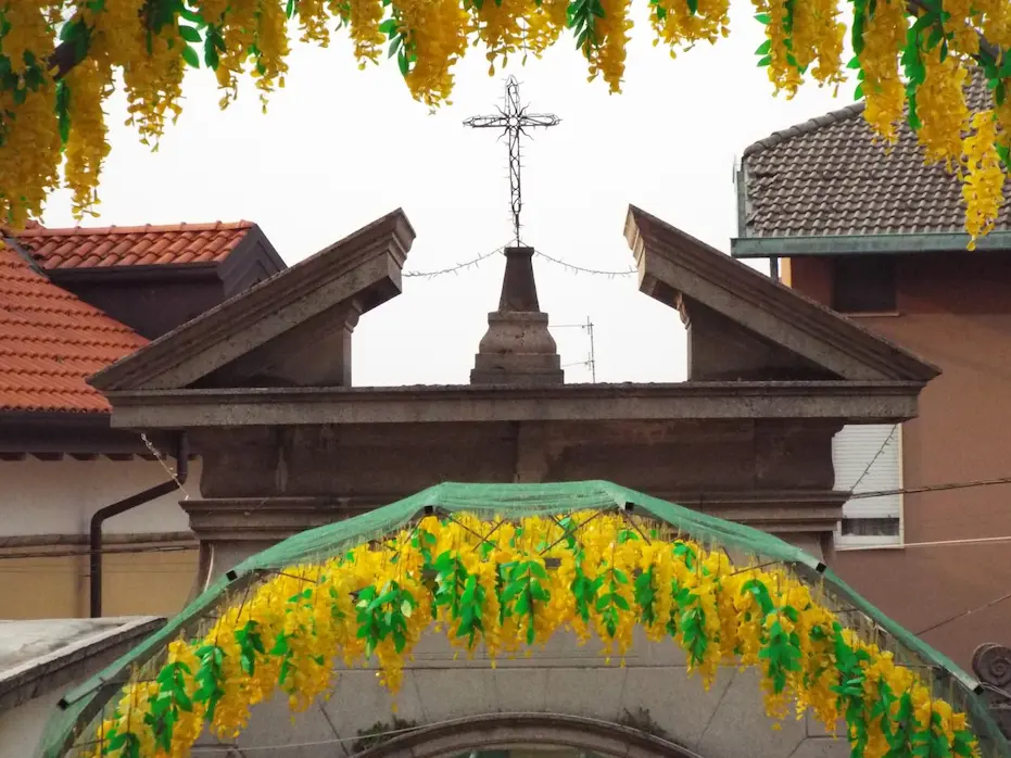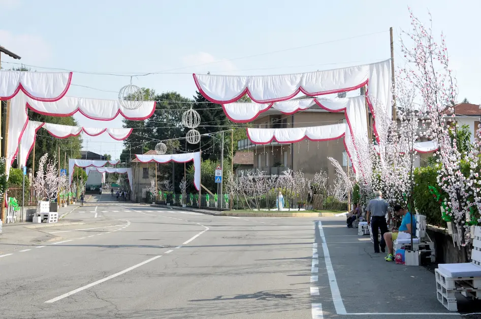 Durante la festa, Casorate Sempione si trasforma attraverso allestimenti e composizioni floreali che accompagnano celebrazioni, percorsi e luoghi simbolici, diventando parte integrante dell’esperienza.